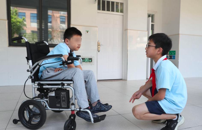浙江宁波的小学生张一(化名)是一名DMD(杜氏肌营养不良)患者,只能靠轮椅“行走”,四年级的他本应搬去二层上课,但学校决定整个年级为他“留级”……