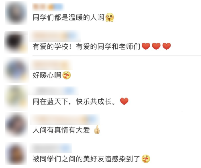 “有爱的学校,被同学们之间的美好友谊感染到了”