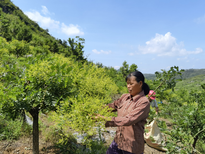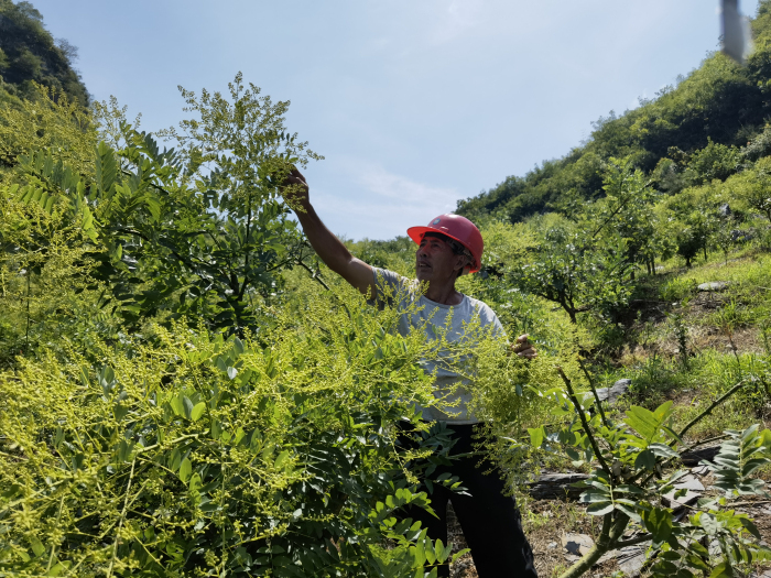 “金槐树的花蕾经杀青晾晒干或烘干后,呈米粒状,所以称为“槐米”。党的政策真的好啊,现在村里修了产业路,生产生活都更方便了,产业振兴更有盼头了”,正在采摘金槐的种植户唐艳秀向记者介绍说。