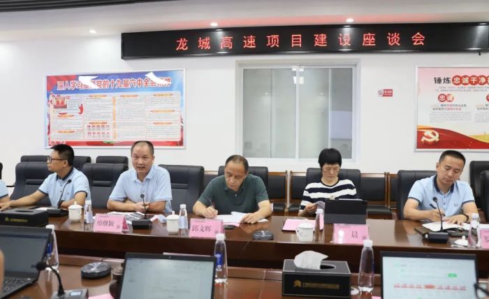 邱文辉一行先后来到龙城高速建设现场,听取龙城高速指挥部和参建单位相关负责人关于项目推进情况的汇报,详细了解项目建设进度,研究指导建设过程中存在的重点难点,并指明切实可行的解决方向。