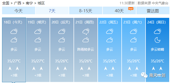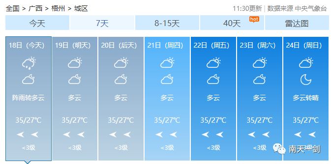 进入三伏天后广西将持续很长一段高温天气并且,受偏南、东南暖湿气流影响容易出现局地雷雨不过降温效果并不明显妥妥的“下开水”