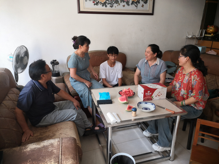 在接下来几天里,其他各班小组也马不停蹄地奔赴到各学生家,给留守在家的学生、孤儿、单亲家庭的孩子带去了暑期的关爱,家长们非常感动,拿出西瓜、沏上茶,招待远道而来的老师们。