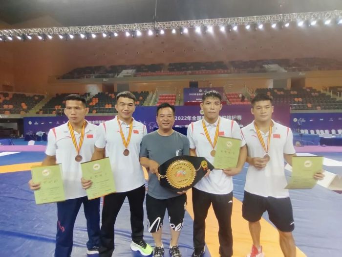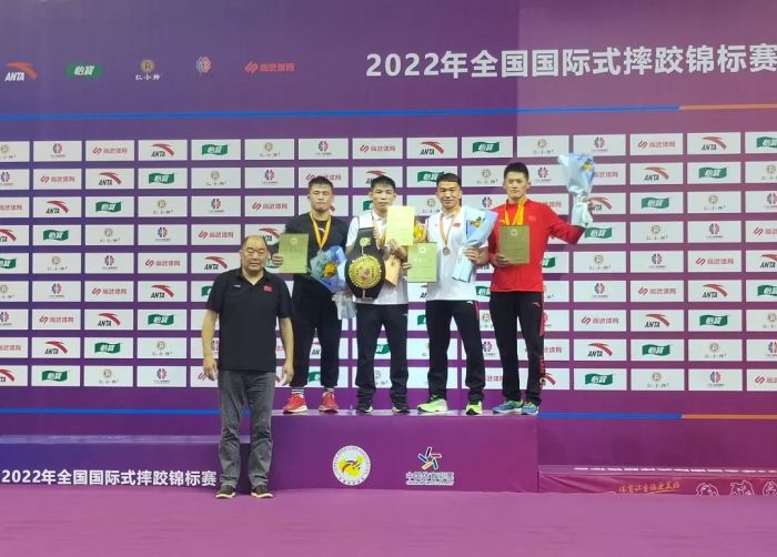 ▲2022年全国国际式摔跤锦标赛陆锋(左二)、李毅(左三)分别获得男子自由式74公斤级第一名、第三名