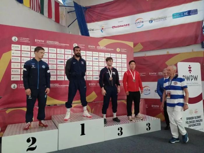 ▲国际摔跤A级系列赛波兰站刘明瑚获57公斤级第三名
