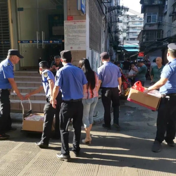 整治过程中,执法人员始终坚持为民管城,采取“一教育、二警告、三处罚”的工作模式,一是通知宣传到位。向市场沿街商户宣传城市管理法律法规和创城知识,提高市民法律意识、文明意识,为创城营造良好的宣传氛围;二是督查取证到位。对违规行为进行取证,并下发《限时整改通知书》,责令违规商户主动清理占道堆放的物品,禁止占道经营,落实“门前三包”责任制;三是强制整改到位。采用疏堵结合的方式,一方面规划市场周边非机动车停车位,设置停车指示牌,引导居民规范停车;设置临时疏导点,引导自产自销农户到规定疏导点经营。另一方面对不听劝阻违规停车、屡教不改占道经营行为严管重罚,确保市场周边市容乱象整改到位。