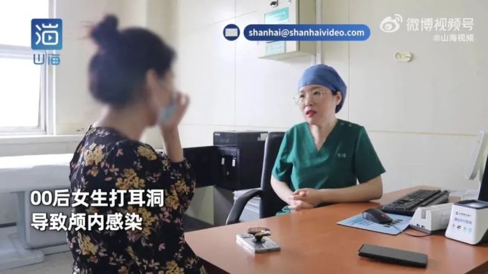 山东济南一18岁女生在商场打耳洞后耳部感染,反复发炎红肿,几天后高热被送到医院就诊。