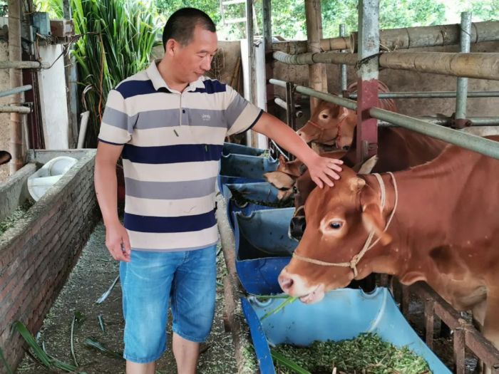 退伍不褪色,迎着晨光实干,想到即作为。陈忠胜回到家乡大水田后,发现家乡种植砂糖橘较多,但近年来收入不尽如人意,于是他转变思路,对大水田村环境和养殖条件进行考察,决定购买牛犊进行养殖试验。但村上主要以种植果树为主,在养牛方面的经验较少,因此,对于陈忠胜这样的“小白”而言,必须“从零开始”,为了更好地做到科学化养殖,陈忠胜买来养牛技术书籍,从头起步,自己刻苦钻研饲养、管理等技术。2019年,他投资建起了简易的养牛棚,养了3头牛犊,在学中干,在干中学,一步一个脚印,发展到现在的小有规模。