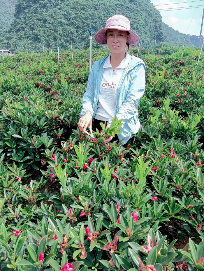 荒地附近没有水源,梁海秀就找人打井,硬生生往地下打了近百米,取地下水浇灌山茶花。“有了水源,还要学好技术,不着急赚钱。”四季杜鹃红山茶是进口的花卉,梁海秀从越南买回花籽育苗。她根据以前种果树、代买树木的经验,向花卉种植专家请教,栽培、育种、施肥、病虫害防治、裁剪……硬是闯过了一道道难关,如今花卉存活率近100%。