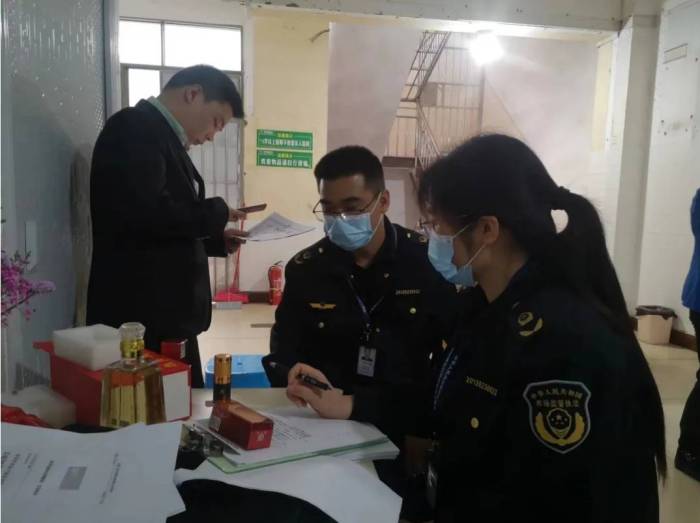▲河池宜州区市场监管局执法人员在该艾灸馆进行检查。河池市宜州区市场监管局供图