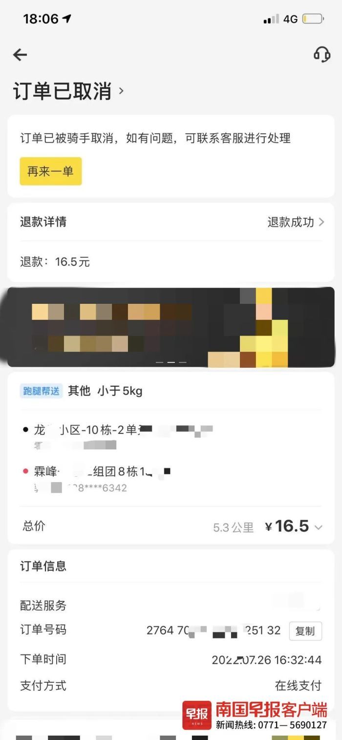 7月26日下午,林女士通过网络下单“跑腿”服务,要将一个扎好的袋子从竹溪大道送到佛子岭路。