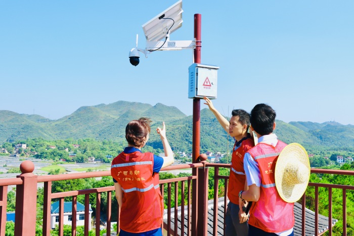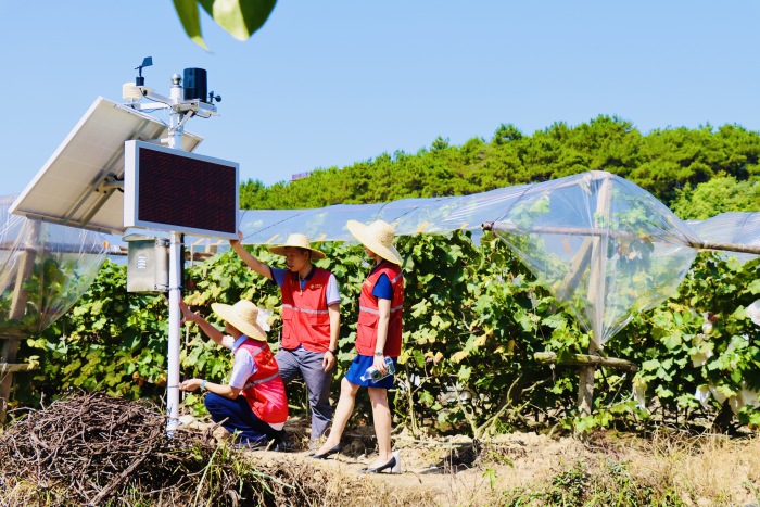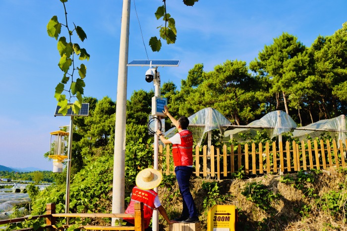 移动工作人员检查葡萄园视频监控摄像头 周云剑摄