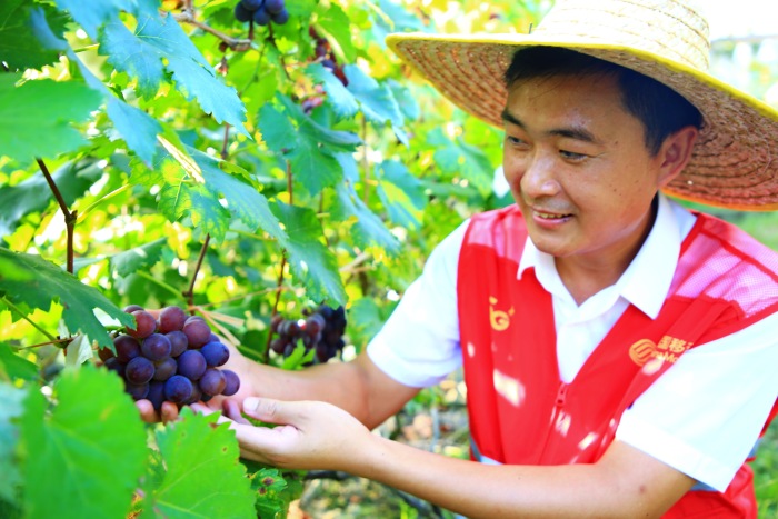 移动工作人员察看葡萄成熟情况 周云剑摄