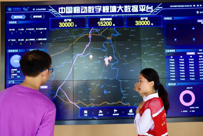 移动工作人员向村民介绍农业大数据平台 文俨惠摄
