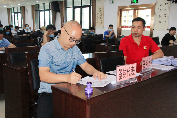 配送企业代表上台做廉洁自律承诺并签订购销合同及廉洁协议