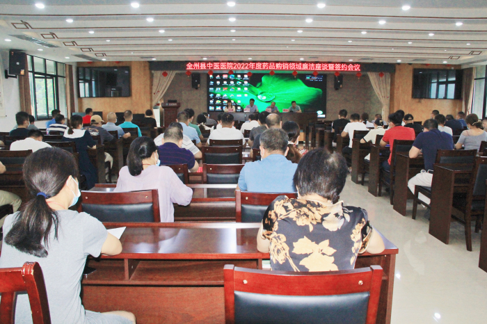 为进一步从源头上遏制医药购销领域不正之风,规范供应服务商及业务人员营销行为,强化对关键领域、重要岗位、重点人员的廉洁自律和廉政风险情况的监督管理,切实提高拒腐防变能力和遵纪守法的自觉性,从而维护医院良好的医疗秩序,营造公平公开公正的合作氛围,在做好我院党风廉政建设和反腐败工作的同时,实现院商双方的互利双赢。8月5日下午,全州县中医医院在门诊综合楼12楼大会议室开展2022年度药品医用耗材配送企业供应商廉洁座谈会暨签约仪式。61家药品及医用耗材供应商代表、院领导班子以及相关重点岗位中层干部和人员18人参会。本次座谈会由文小荣副支书副院长主持。