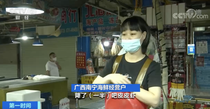 经营户表示,开海后,北海、钦州的批发商相继送来了刚刚捕捞上来的海鲜,海鲜供应充足,价格也随之下降,降幅最大的皮皮虾和花蟹成为最抢手的产品。