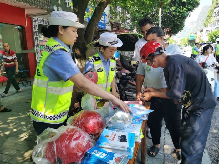 为扎实开展夏季交通安全整治“百日行动”,切实预防和减少道路交通事故,维护道路交通安全形势持续平稳,进一步巩固提升电动自行车、摩托车以及汽车驾乘人员安全防护水平,8月24日上午,按照上级公安机关关于夏季治安打击整治“百日行动”及道路交通事故预防“减量控大”部署要求,阳朔县公安局交通管理大队组织警力开展交通违法整治和“一盔一带”宣传活动,确保夏季治安打击整治“百日行动”取得实效。