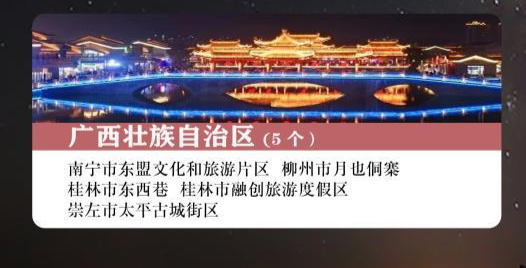 2021年11月,广西共有6家集聚区入选第一批国家级夜间文化和旅游消费集聚区,加上本次入选第二批的5家集聚区,广西共有11家国家级夜间文化和旅游消费集聚区,数量居全国前列。