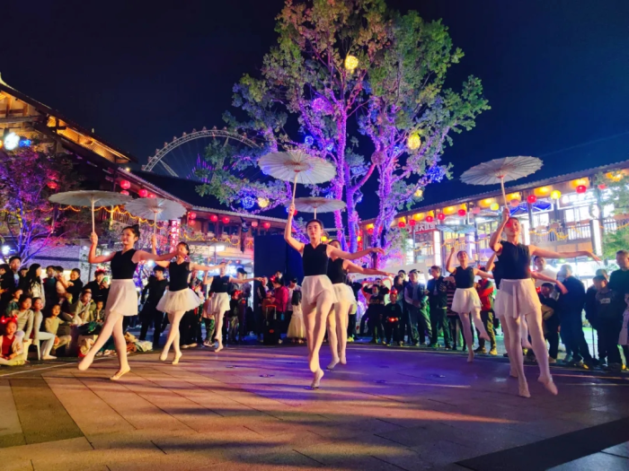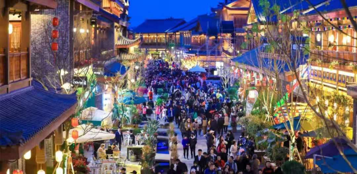 集聚区的夜游打造重点以小镇商街为主,整合夜游、美陈、演艺整体营造夜间经营氛围,以引人流、旺人气和讲特色为主要目标,结合一店一色打造桂林特色地标商业,突出桂林特色主题夜游,部落特色互动沉浸夜游,夜间营业的商户或项目数量占比超60%,成为桂林市最具吸引力的夜间文旅项目之一。