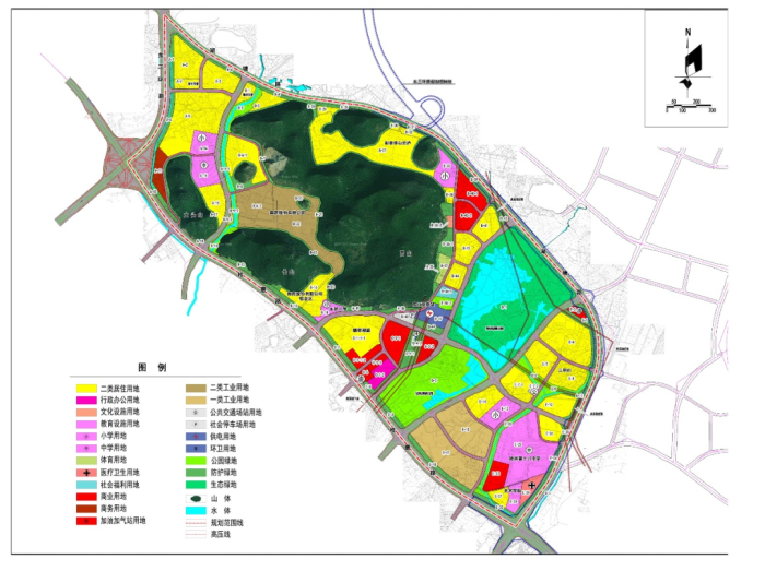 4.对原规划的两处旅游服务设施用地进行调整,其中B-36地块分别调整为防护绿地及文化设施用地,B-5地块调整为二类居住用地,同时将原规划文化设施用地(B-44地块)调整为二类居住用地。