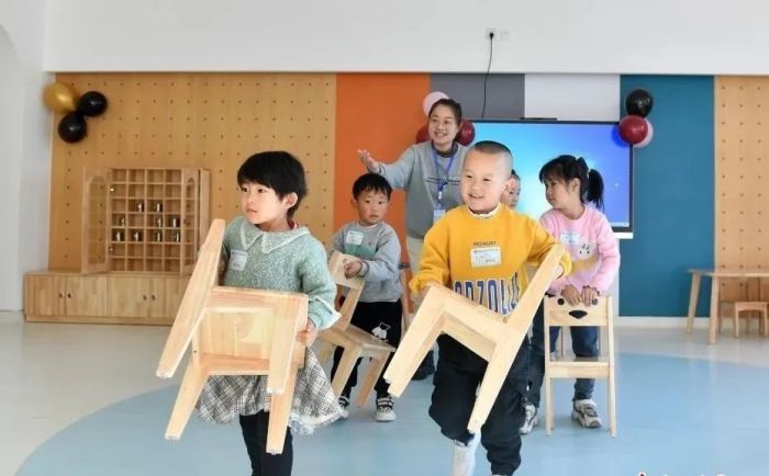 幼儿园的老师和小朋友在园内活动。中新社记者 韩冰 摄