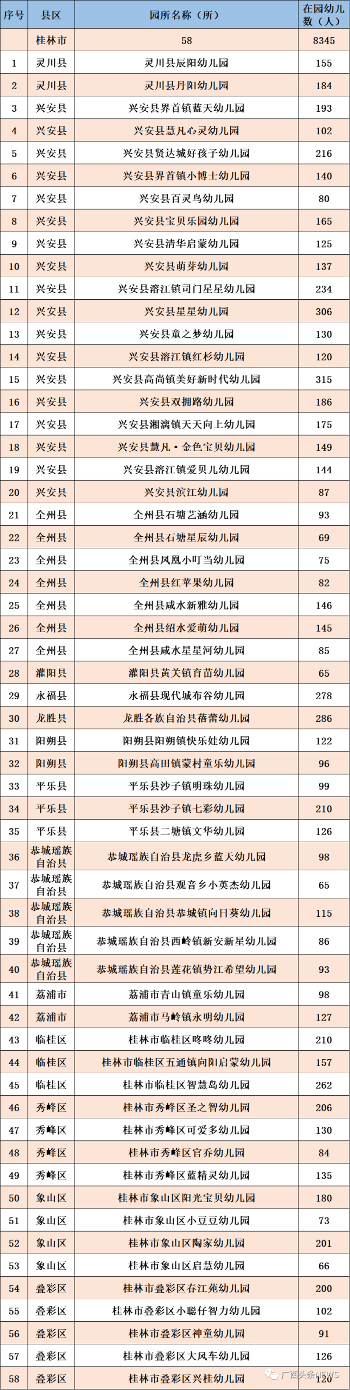 重新评估认定第六批自治区普惠性民办幼儿园名单(共786所,桂林有92所)