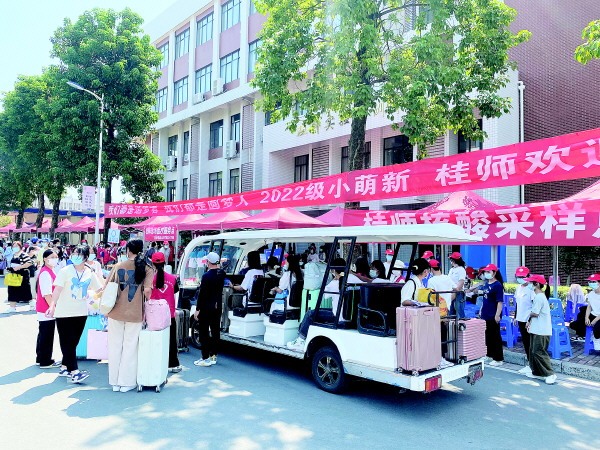 为了迎接新生,桂林各高校做足准备,在严守疫情防控安全防线的前提下,通过各种技术手段和现代化服务,帮助新生们顺利入学。记者走访看到,各校迎新既秩序井然,又充满暖意。