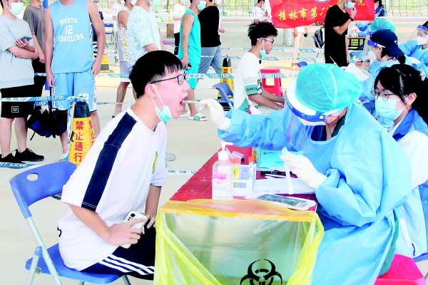 新生正在进行核酸检测。(图片由桂林电子科技大学提供)