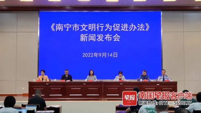 9月14日,记者从《南宁市文明行为促进办法》(以下简称《办法》)新闻发布会了解到,该办法将于12月1日起施行,是南宁市第一部关于精神文明建设促进类的专项政府规章立法。《办法》明确对社会信用、网络生态、校园建设、农贸市场、住宅小区等12个重点领域的文明建设作出规定,并列出了南宁市要重点治理的不文明行为清单。