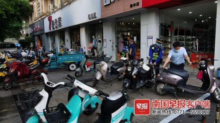 ▲城管执法人员对停车秩序进行规范。(资料图) 南国早报记者 赵劲松摄