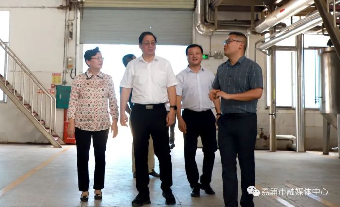 彭东光先后来到广西英路维特药物有限公司、荔浦隆赢食品科技开发有限公司进行实地调研,通过参观车间厂房、与企业负责人交流等方式详细了解企业生产经营、市场前景、发展规划等情况。
