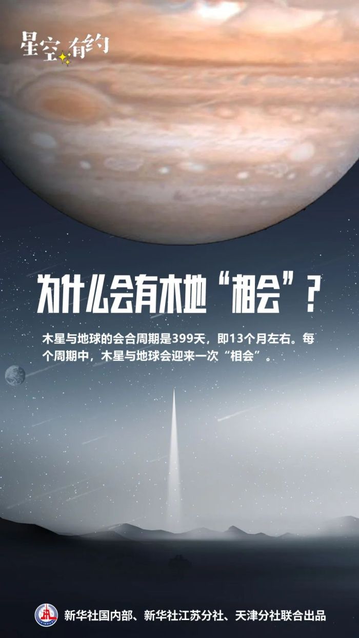 王科超介绍,木星和地球都绕着太阳公转,它们的距离时远时近。这两颗行星的会合周期是399天,即13个月左右。每个周期中,木星与地球会迎来一次“相会”。但由于二者绕日运行的轨道是椭圆且存在倾角,每次会合周期中地球与木星的最近距离也会有所差别。