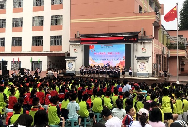 9月29日,龙隐小学举行“童心颂党恩”国庆文艺汇演。每个班级的孩子们和老师自编自导自演,用朗诵、诗歌、舞蹈等演出来喜迎国庆,表达对祖国母亲的祝福与热爱。