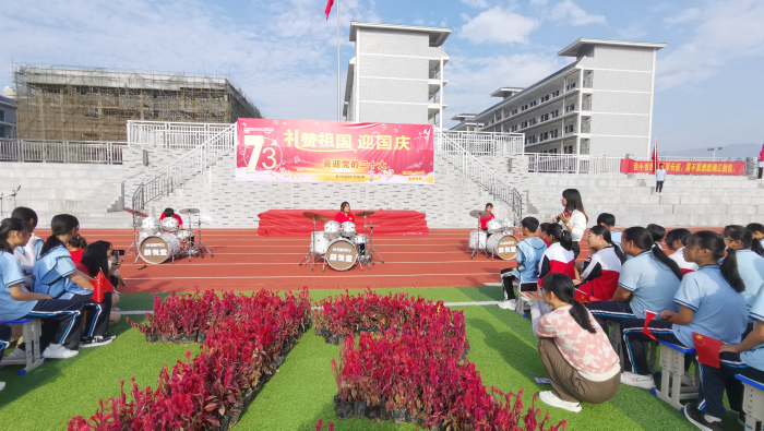 花样跳绳,手语歌《国家》,学生代表朗诵《我骄傲,我是中国人》,架子鼓表演《孤勇者》,师生合唱《我和我的祖国》,一首首歌曲,一句句心声,诉说着祖国的光辉历程和喜迎二十大的美好心愿。