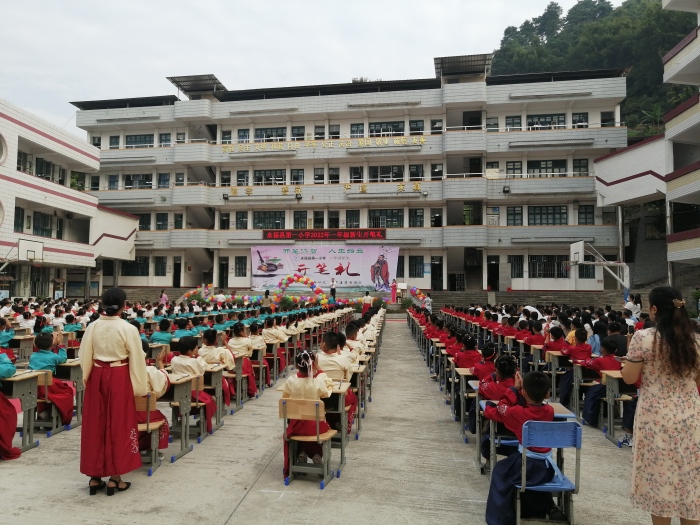 9月28日是孔子诞辰纪念日,当天上午永福县第一小学在校园操场上举行2022年新生入学开笔礼仪式。早上8点左右250名身穿汉服的一年级新生在老师带领下,从铺着红毯的入学门进入会场,整齐入座。韦平校长宣布仪式开始,整个仪式包括七个环节:正衣冠,敬拜师长,朱砂启智,击鼓明志,启蒙描红,家长送书,诵读经典。孩子们经历庄重的仪式,从此开启人生智慧之门。