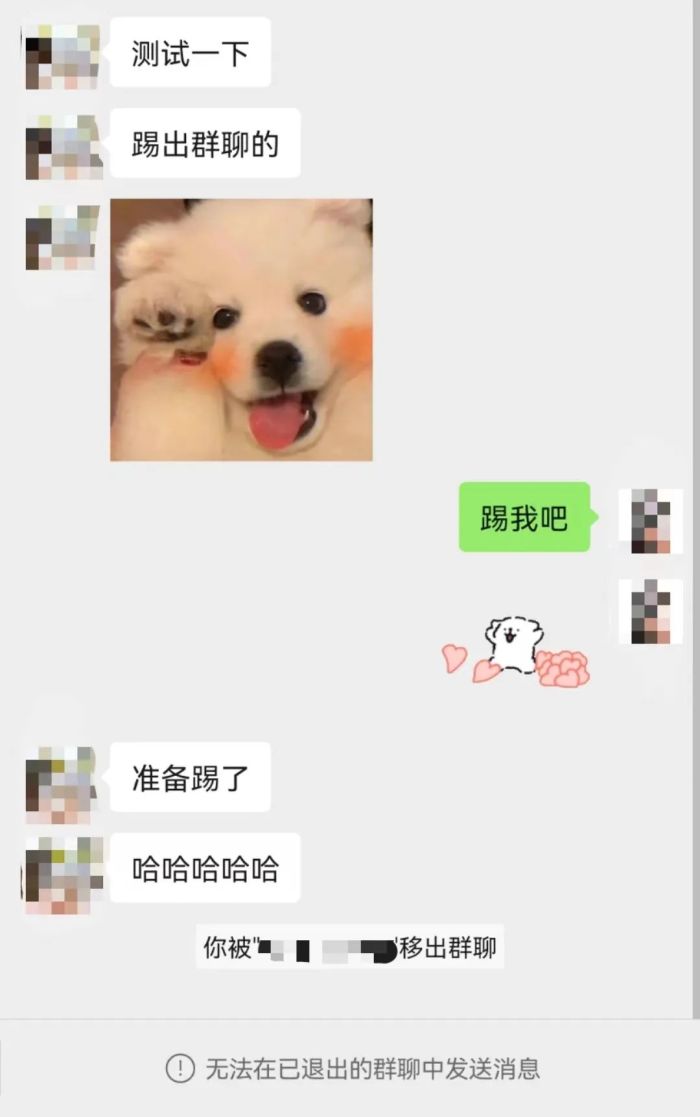 “被踢出群也能保留记录吗?”实测后发现,被踢出群也可以保留记录!聊天框的提示也和主动退群一样
