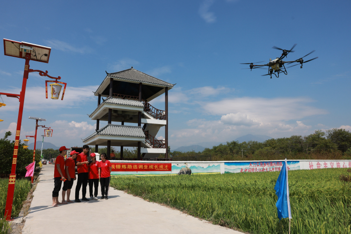 在植保无人机体验时,选调生认真聆听了技术人员关于植保无人机在农作户管护方面的应用,以及具体操作方法方面的讲解,并在技术人员的指导下利用无人机对农作物进行了植保。