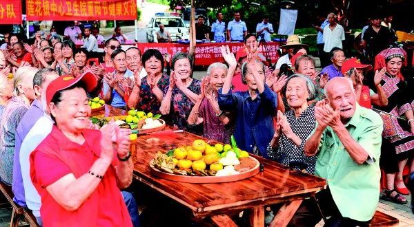 ▲为欢度重阳佳节,恭城瑶族自治县举行百岁老人慰问、健康义诊、趣味游园、打太极、长桌宴爱心长寿面等“我们的节日·重阳”敬老爱老系列活动,营造敬老爱老的良好氛围。图为近日莲花镇莲花村活动现场,老人们露出了开心的笑容。