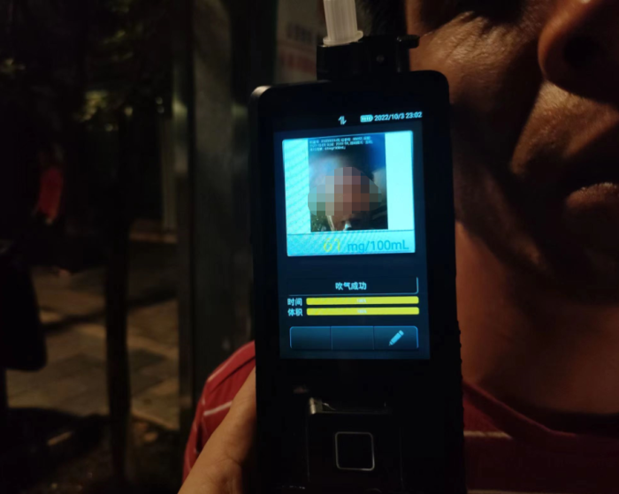 经现场呼气酒精测试,驾驶员唐某某体内酒精值为79mg/ml。在对其驾驶资格的查询中,警员们还发现唐某某并未取得机动车驾驶证。最后,民警依法对驾驶员唐某某的再次饮酒后驾驶机动车、未取得机动车驾驶证、驾驶无号牌摩托车等三项交通违法行为作出罚款1600元,并处20日行政拘留的合并处罚。