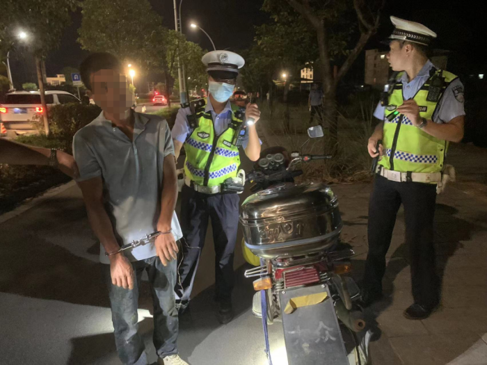 10月3日21时30分许,桂林象山交警大队民警在辖区奇峰路路段开展酒驾整治行动,行动中拦下一名驾驶摩托车男子,该驾驶员看到前方有交警临检后,立即将摩托车往路边一扔,一头扎进了路边的树林中逃跑。