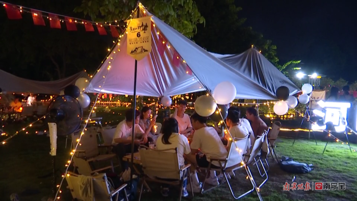 南宁:露营成南宁人国庆假期出游“顶流” 今年国庆假期,市民曾女士,带着女儿约上三五亲戚,辗转了南宁市区三四个露营地。曾女士一行临时傍晚时,在邕江边搭起天幕式的帐篷,张罗一桌美食,一家人聚在一起很惬意。曾女士从今年“三月三”假期开始加入露营行列,从挑选营地、购买装备,到拆搭帐篷、打地钉、固定绳子等都是从零开始,购买装备是一笔不小的开支,花了五六千元。与曾女士购置露营装备不同,市民刘先生选择了能够拎包入住的露营。 “看到朋友圈里都是在露营,我们也想试试。”刘先生说,国庆7天假,总要带孩子出去玩一玩,选择了青秀区的一家营地。一家老小出门露营,吃喝是个大“工程”,这里有露营套餐,提供天幕、桌椅、炉具、食材等露营用具,只需增加些自己喜欢的食材就可以。10月4日晚,记者来到南宁大桥下的邕江边看到,许多市民朋友携家带口来这里“安营扎寨”,江边灯火通明,在明黄色的灯光下、富有动感的音乐声中,大人们对饮畅谈,小孩子们嬉闹游玩。广西:今年国庆假期各地户外露营持续火热