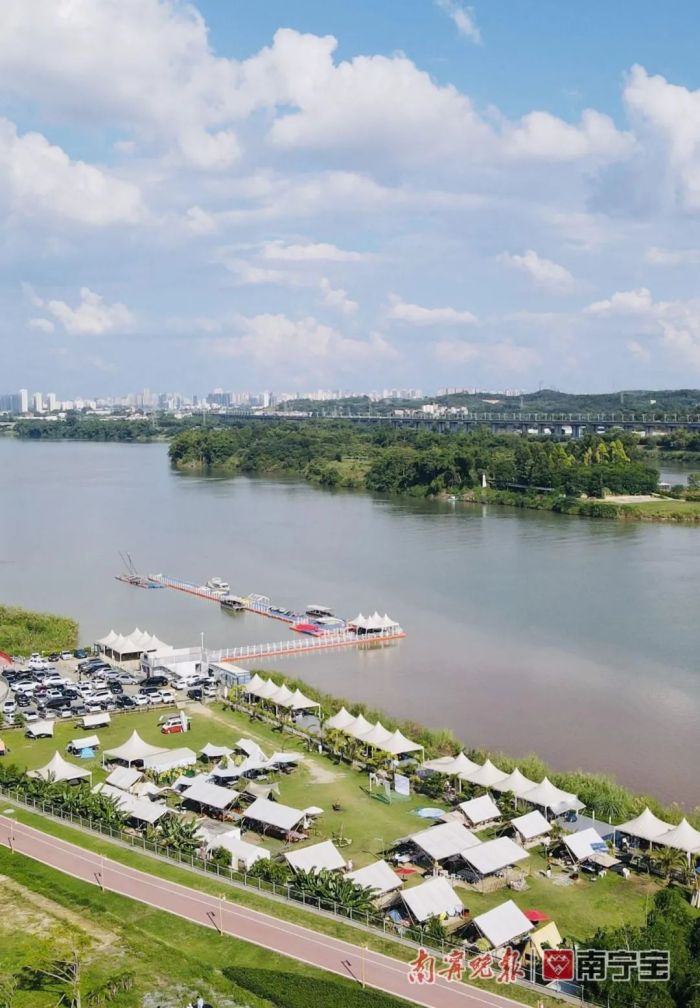 美丽南方一临江露营基地 本报记者 宋延康/摄露营有多火?今年国庆假期广西户外露营持续火热,桂林、柳州、北海、崇左等露营地、沿江绿地搭满了帐篷。如在桂林一些热门露营地,出现了一位难求的情况;露营热也带来了行业相关产品的热销,户外产品、烧烤食材销量激增,户外经济成为假期消费“新风口”。在柳州,以露营为主打的户外休闲方式持续升温,夜幕降临,在环江滨水大道的草坪上热闹非凡,有些露营还有自助餐饮、休闲活动。