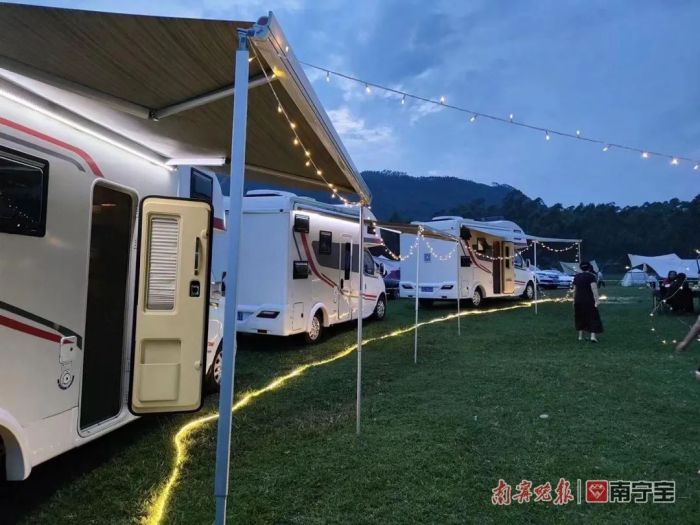 房车露营 (网友陈先生供图)露营的火爆在一定程度上带动了房车游。上汽大通房车相关负责人陈先生表示,今年国庆假期,他们的房车一辆不剩,全部租满,还有3个旅行团,大多集中在南宁周边的露营地,如四季那廊、美丽南方等露营地,也有开往武鸣、上林,或海边。 有业内人士认为,露营带来的不同体验,也带动了旅游行业的消费升级,房车类的旅游产品将是接下来的趋势。“露营+房车”“露营+景区”“露营+民宿”“露营+研学”等是露营火爆之后延伸出来的“露营+”,这些新形式的出现,让“露营热潮”不再只是单一的露营方式,也吸引了越来越多的“露营小白”,愿意尝试打开露营这扇大门。