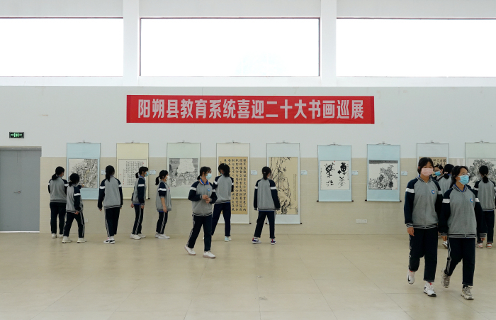 为充分展示阳朔教育发展的新气象、新风貌,激发全县教育系统艺术爱好者的创作热情,抒发爱国、爱党、爱家乡的真挚情怀,大力弘扬中华民族优秀传统文化,10月9日,阳朔县教育系统喜迎二十大书画巡展在阳朔镇第二中学开展。