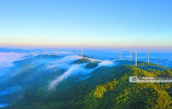 近年来,广西大力发展清洁能源,在推动绿色发展上不断迈出新步伐。图为南宁市良庆区墰清岭风电场。丘和 摄