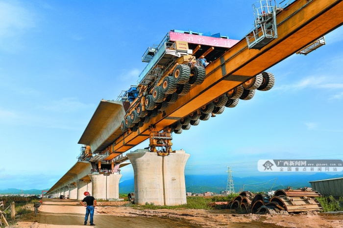 近年来,广西交通运输事业发展突飞猛进,交通基础设施更加完善,运输服务能力不断增强。图为近期建设者在南玉高速铁路兴业段紧张施工。余飞 摄