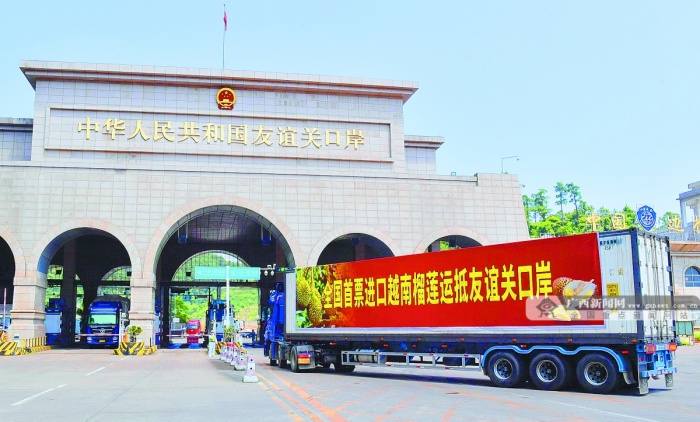 9月19日,一批重18.24吨、货值51.24万元的越南榴莲运抵广西凭祥友谊关口岸,标志着RCEP生效后首个成员国新准入水果实现输华。邓敏 庞立坚 摄