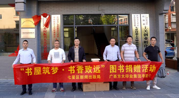 此外,七星区穿山街道上关村、合心中心校也收到了一批“文化财富”。桂林七星区新闻出版局联合广西师范大学出版社、独秀书房、广西方大印业集团等爱心企业走进乡村,为上关村的文化中心、该村的红色民宿新时代文明实践点的“悦读角”、合心中心校图书室捐赠了价值万元的图书期刊。广西方大印业集团董事长项方大表示,作为一家文化企业,捐赠图书进乡村是一件振兴乡村发展的大好事,能够满足村民们的精神文化需求,为乡风文明建设出力。