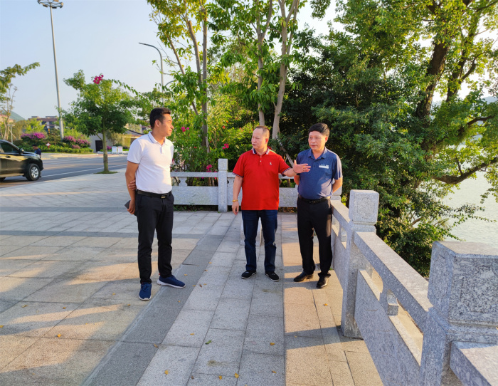 永福县人大常委会主任罗代璋、工信和商贸局局长刘学永陪同客商考察项目地和永福自然环境,付妮琳摄