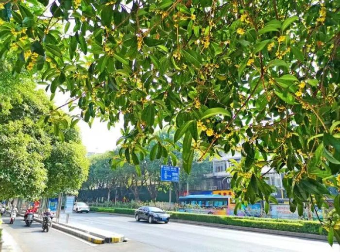 真香!这几天,桂林市区的桂花迎来了第二轮绽放。和10多天之前的相比,这一轮开放的桂花香味更浓、花事更盛。